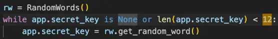 Going back to the obfuscated source code that is given, we know that this server is using flask, and it is generating a random english word with at least 12 letters as a secret key to sign it.