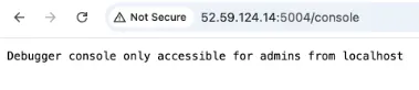 Going back to the server’s response, we notice that it was using werkzeug, and here we can see that the console link is open, but it is restricted